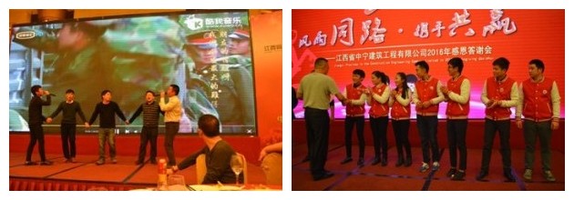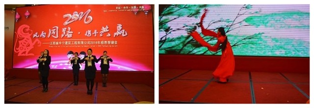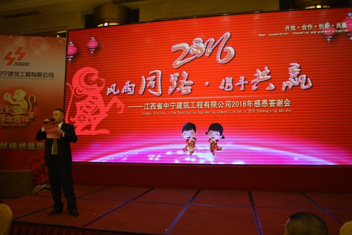 晚上19:07分,在南昌市紅谷灘區秋水廣場旁泰耐克大酒店,伴隨著鞭炮音樂聲,江西省中寧建筑工程有限公司2016年迎新春晚會正式拉開序幕。